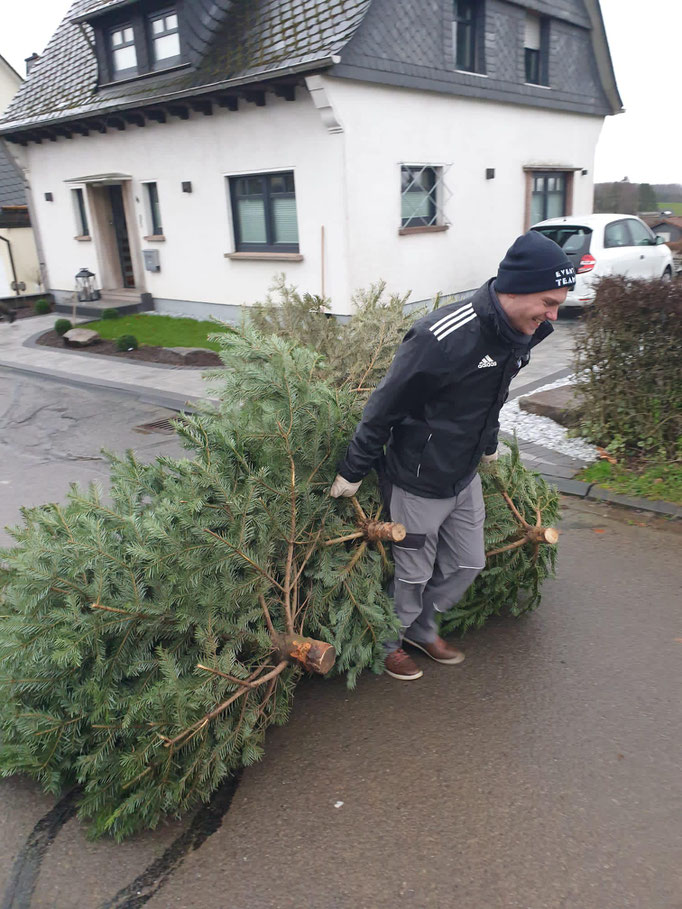 Jedes Jahr im Januar sammeln wir die ausgedienten Weihnachtsbäume in Hünsborn ein und fahren sie in den Wald, wo sie Ostern