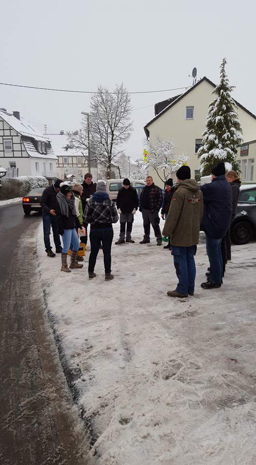 Wir starten jährlich um 9 Uhr morgens mit zwei Treckern und fahren durch das gesamte Dorf. Hier gibt es klare